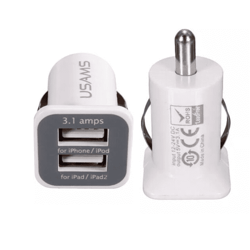 Car charger With USB – Lightning – White