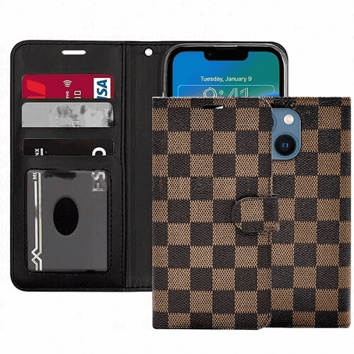 Checker Printed Photo ID Wallet for Apple iPhone 16 – Brown