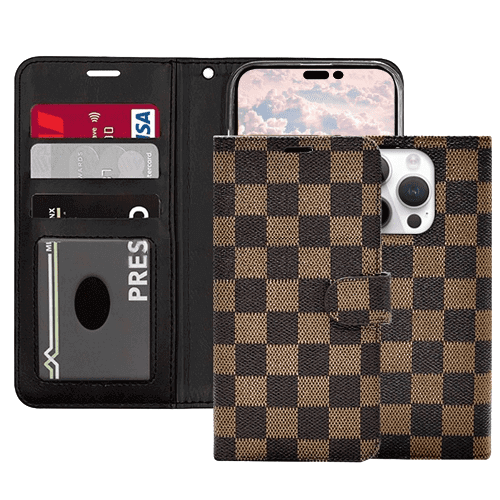 Checker Printed Photo ID Wallet for Apple iPhone 16 Pro Max - Brown