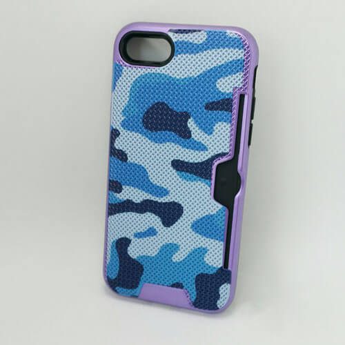 Military Camouflage Credit Card Holder Case For Iphone 7 / 8 - Purple