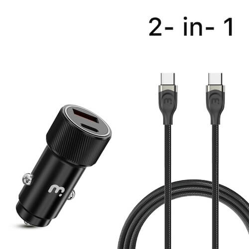 MyBat Pro 2-in-1 Dual Port Quick Power Delivery Car Charger (30W) With USB-C Cable- Black
